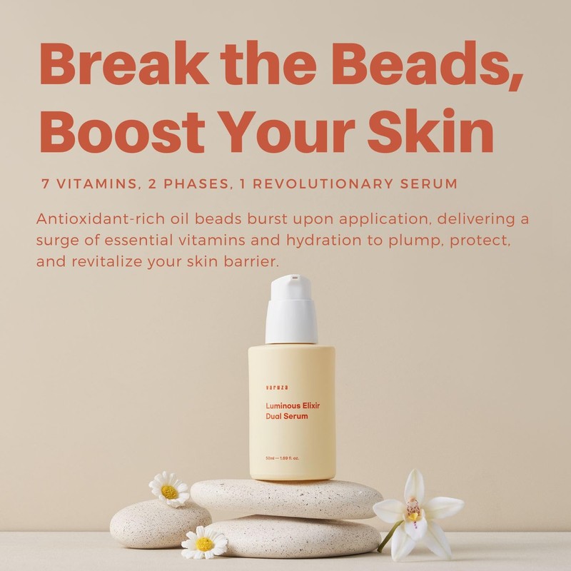 varuza Luminous Elixir Dual Serum Vita 7 Complex 5% Vitamin K3 Face Serum Hyaluronic Acid & CoQ10 Sea buckthorn oil Pullulan Hydrating & Skin Barrier Repair Anti-Redness Vegan Korean Skincare 50ml