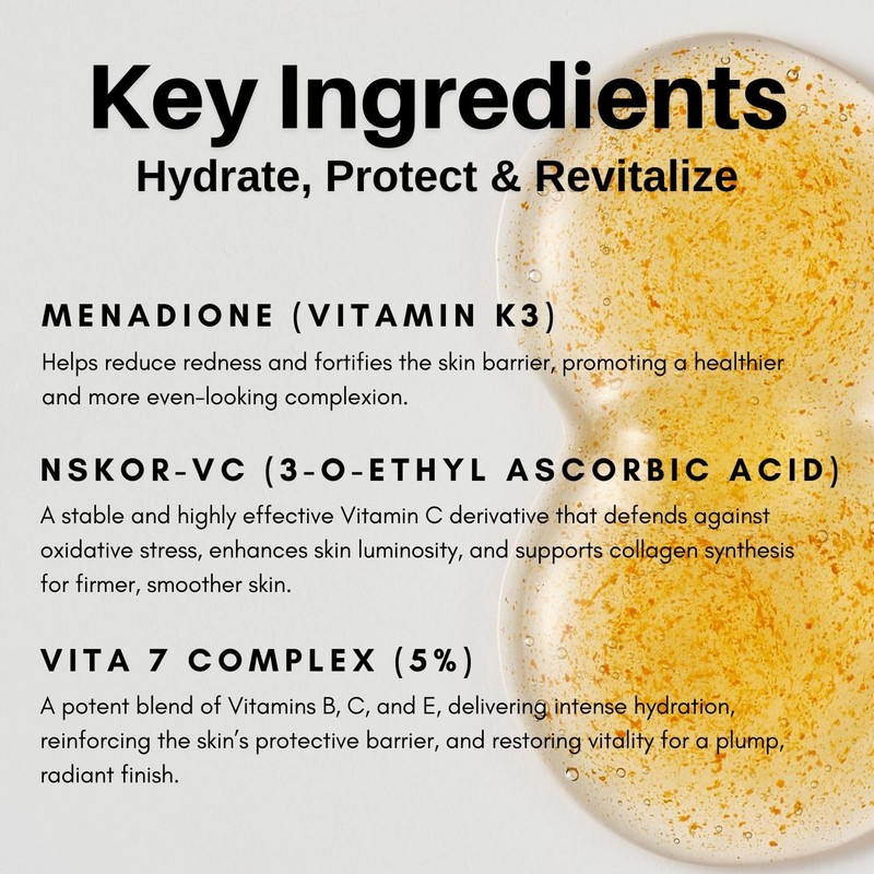 - 💦 Intensive Hydration for Dehydrated & Dry Skin : Powered by Vitamin K3, Vita 7 Complex (5%), and Hyaluronic Acid, this serum deeply hydrates, plumps, and smooths rough, flaky skin 🧖♀️💧 without feeling heavy or greasy.