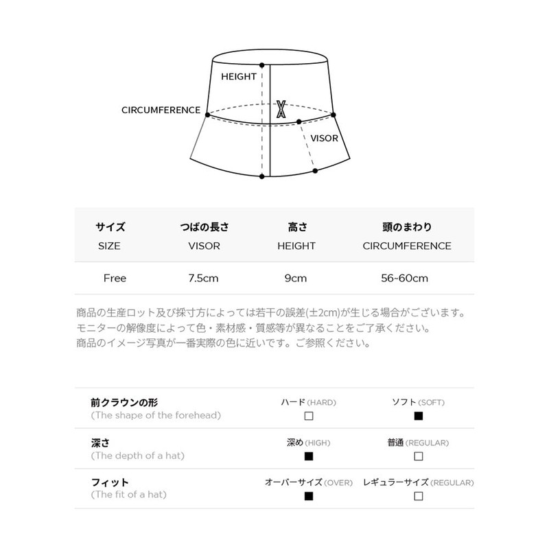- (Overfit) The ideal overfit that VARZAR has been found after research through various sampling. This bucket hat features a deep and detailed shape. Wear it for long periods of time and it won't leave marks on your hair, so you can maintain your style even after repeatedly putting it on and taking it off. It goes well with any style, so it can be worn by both men and women