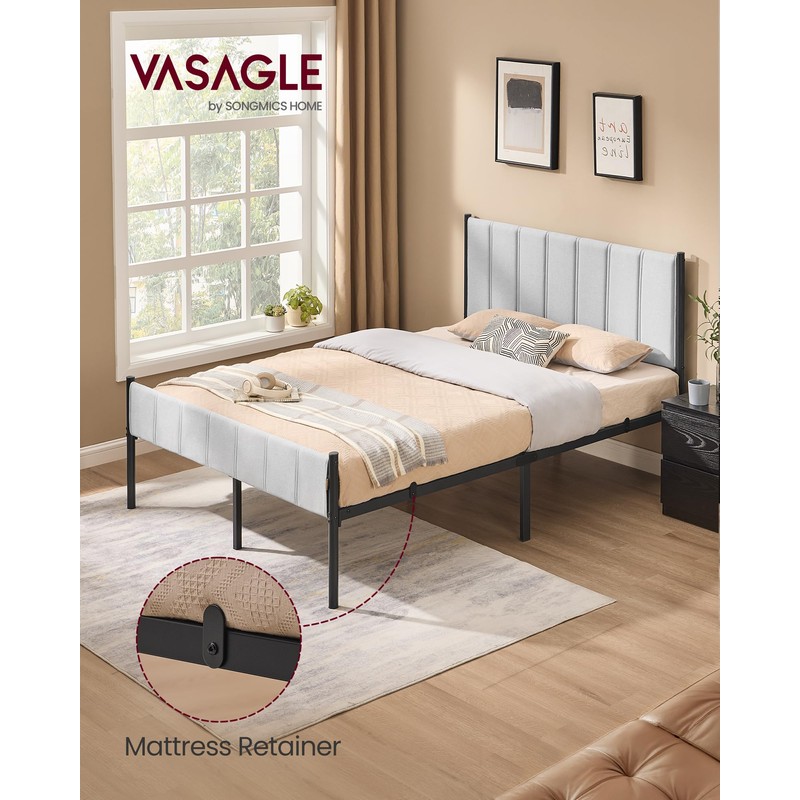 VASAGLE Full Bed Frame with Upholstered Headboard, Metal Bed Frame Full Size with Footboard, 1100 lb Weight Capacity, Steel Slats, Easy Assembly, No Box Spring Needed, Dove Gray URMB982G01V1