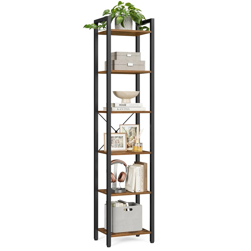 - Space-Saving for Any Room: This 11.8"D x 15.7"W x 73.2"H narrow bookshelf occupies little floor space yet offers you 6 tiers of vertical storage, making full use of the small spaces in your living room, bedroom, bathroom, or entryway