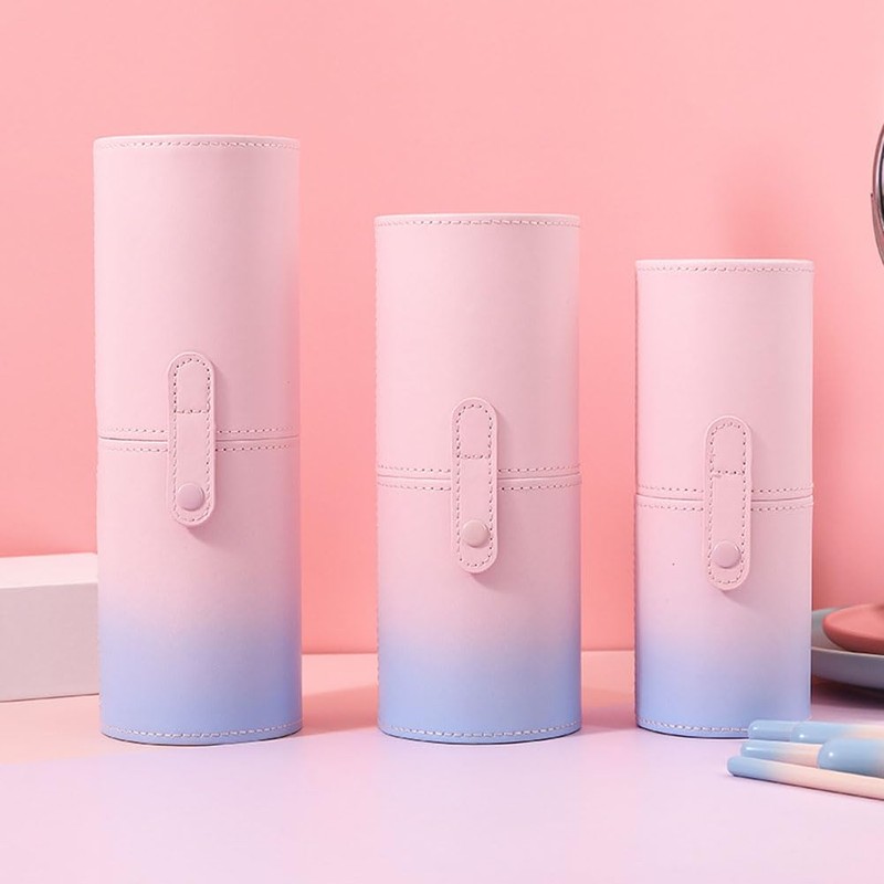 VASANA Pink PU Leather Makeup Brush Holder Organizer with Lid Portable Makeup Tools Large Capacity Case Organizer Cylinder Storage Box Bag(without brush)