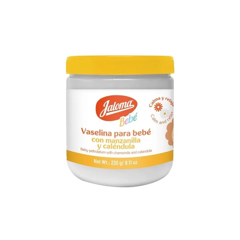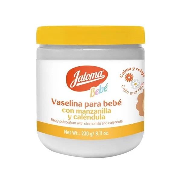 La Vaselina Jaloma para Bebé con Manzanilla y Caléndula (230g) está especialmente formulada para cuidar y proteger la piel sensible de los más pequeños. Enriquecida con ingredientes naturales calmantes, como la manzanilla y la caléndula, ayuda a aliviar irritaciones, raspaduras y quemaduras menores.
