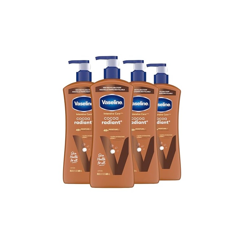 Vaseline Intensive Care Body Lotion Cocoa Radiant 4 Count for Dry Skin Lotion Made with Ultra-Hydrating Lipids and Pure Cocoa Butter for a Long-Lasting, Radiant Glow 20.3 Oz