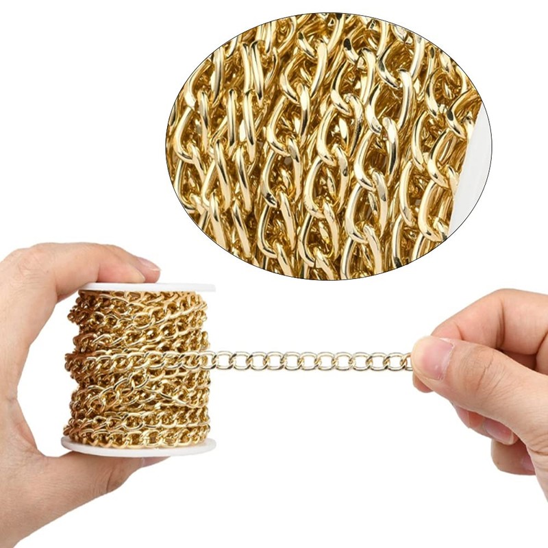• The kit contains: 1 roll 5m gold aluminum chain and 1 roll 5m silver aluminum chain with plastic spools.