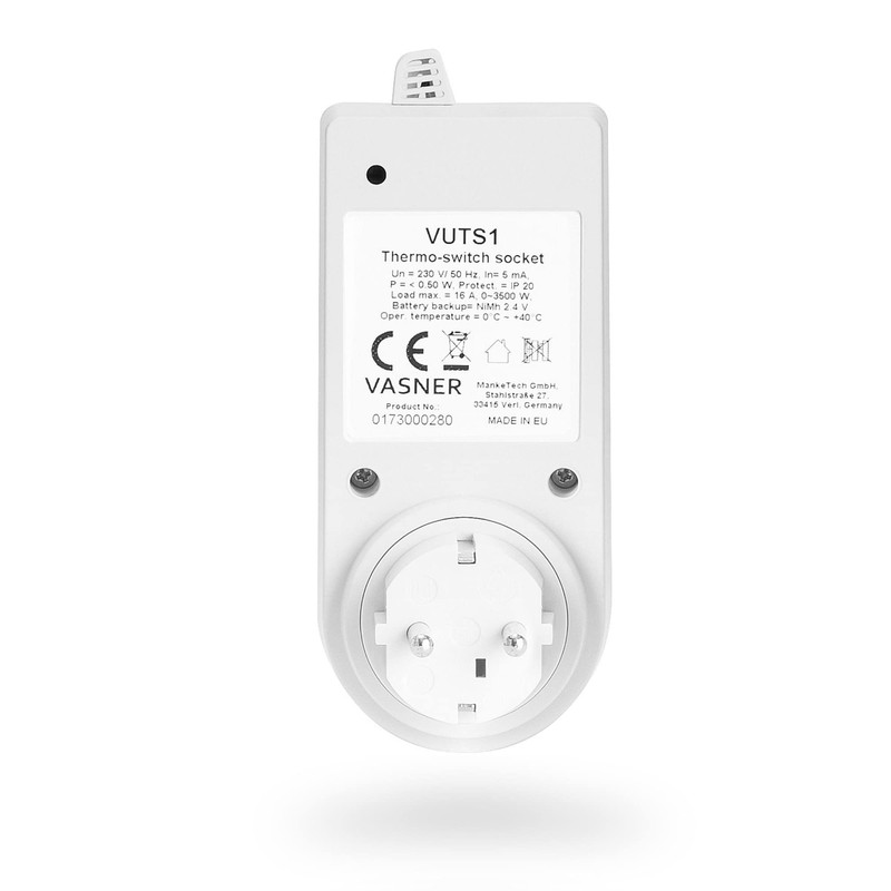 VASNER Universal Thermostat VUTS1 - Individually Programmable Socket Thermostat, 3-40°C, Max. 3,600W, 230V/16A, Easy & Flexible Control of Electric Heaters Infrared Heaters