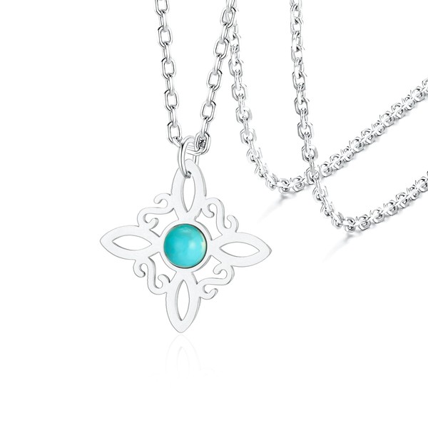 - Design concept: the stainless steel witch necklace consists of four interlocking knot vesica piscis shapes (the Witch's Knot), center with a beautiful sky blue turquoise stone, symbol of good luck and protection. A captivating amulet piece that attracts everyone's attention