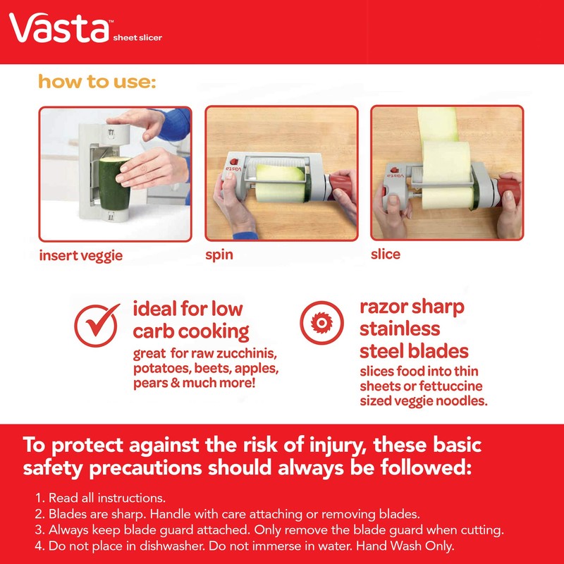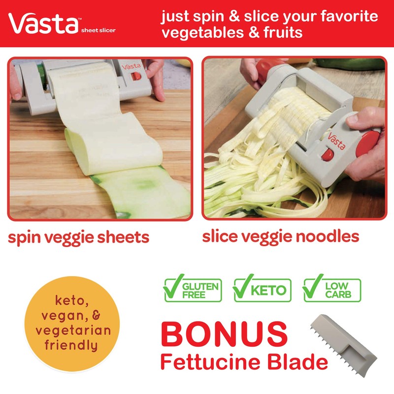 (Vasta) - Vasta Vegetable & Fruit Sheet Slicer - BPA-Free & Stores Away Easily - Create Low Carb Veggie Sheets, Lasagna, Fettucine from Zucchini, Potatoes, Beets, Apples, Pears - Keto, Vegan, Vegetarian