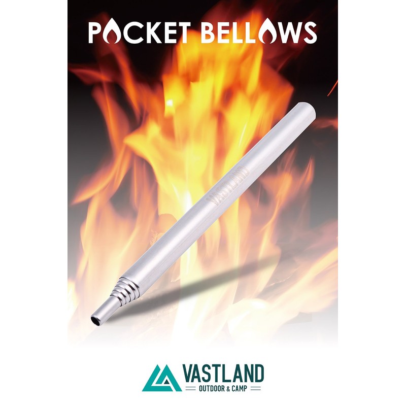 Vastland Bellows Fire Blowing Rod, Fire Starter, Carabiner Storage Case, Extendable, 6 Tiers, Caramel Brown