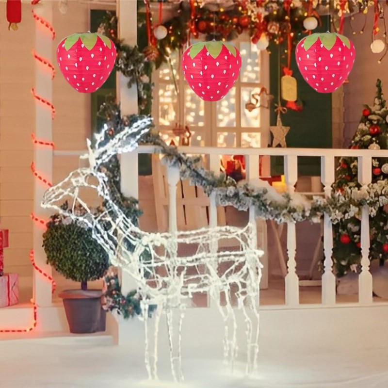 - Party decoration: strawberry shaped paper lanterns. This exquisite strawberry lantern with painted strawberry shapes on the surface is foldable, lightweight and durable and an ideal choice for party decorations.