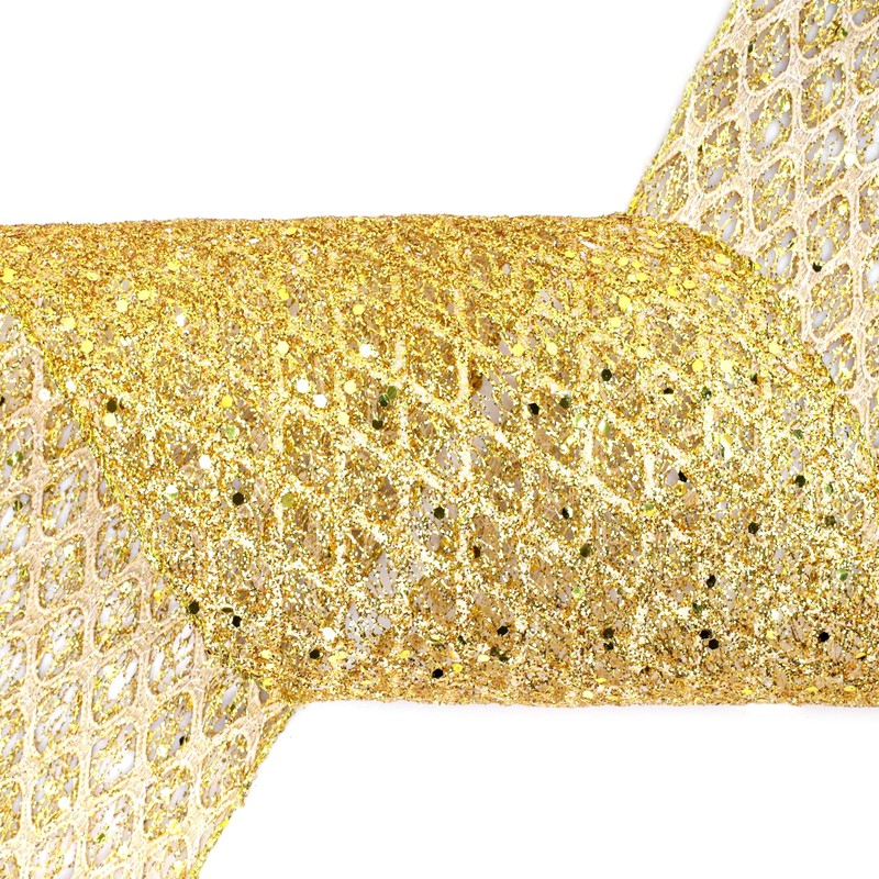 VATIN 6" Gold Christmas Ribbon, Gold Glitter Mesh Diamond Web Sequin Dots Wir...