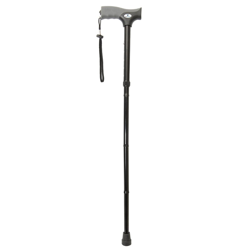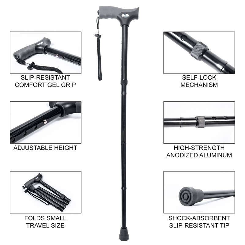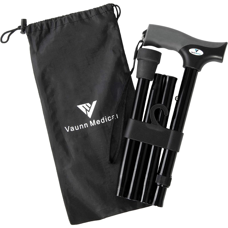 FSA/HSA Eligible, Vaunn Medical Easy Grip Height Adjustable Folding Cane/Walking Stick with Strap/Pouch- Compact, Portable, and Safe Walking Assistant- Non-Slip Grip Handle- Men, Women, Elderly