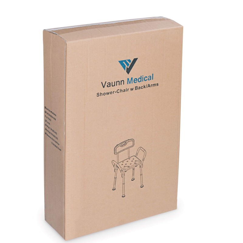 The Medical Deluxe Spa Shower Chair offers a comfortable and safe solution to any fall-risk individuals or seniors who have problems standing while showering. Constructed of strong 1" anodized aluminium frame with angled legs and non skid rubber tips, this shower chair is both sturdy and durable. Its wide, contoured anti-bacterial polystyrene seat offers good support and hygiene for individual during use. The drainage holes on the seat is designed to allow water to be drained effectively thereby reducing the risk of slipping. Our tool-free assembly also makes it easy for any one in the family to assemble for use within minutes. The Medical Shower Chair is safe, hygienic, easy to use and rust resistant.The Vaunn Medical Deluxe Spa Shower Chair offers a comfortable and safe solution to any fall-risk individuals or seniors who have problems standing while showering. Constructed of strong 1" anodized aluminum frame with angled legs and non-skid rubber tips, this shower chair is both sturdy and durable. Its wide, contoured polystyrene seat offers good support and hygiene for individuals during use. Drainage holes on the seat are designed to allow water to drain effectively, thereby reducing the risk of slips and falls. Our tool-free assembly also makes it easy for anyone in the family to assemble for use within minutes. The Vaunn Medical Shower Chair is safe, hygienic, easy to use and rust resistant.Seat Dimension: 12.75'' x 17.75''Seat Height with Back Rest: 28.50'' - 33.50''Seat Height to Ground: 16'' - 21''Product Weight: 8.50 lbs.Max User Weight: 250 lbs.