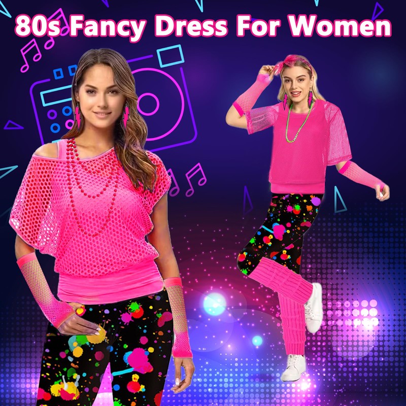 - Vibrant and striking colours: our accessories are characterised by bright, eye-catching colours. Be the eye-catcher at any 80s event with our complete set, mesh gloves, leg warmers, necklace, earrings, bracelets and more - a fulgurant ensemble for unforgettable 80s parties.