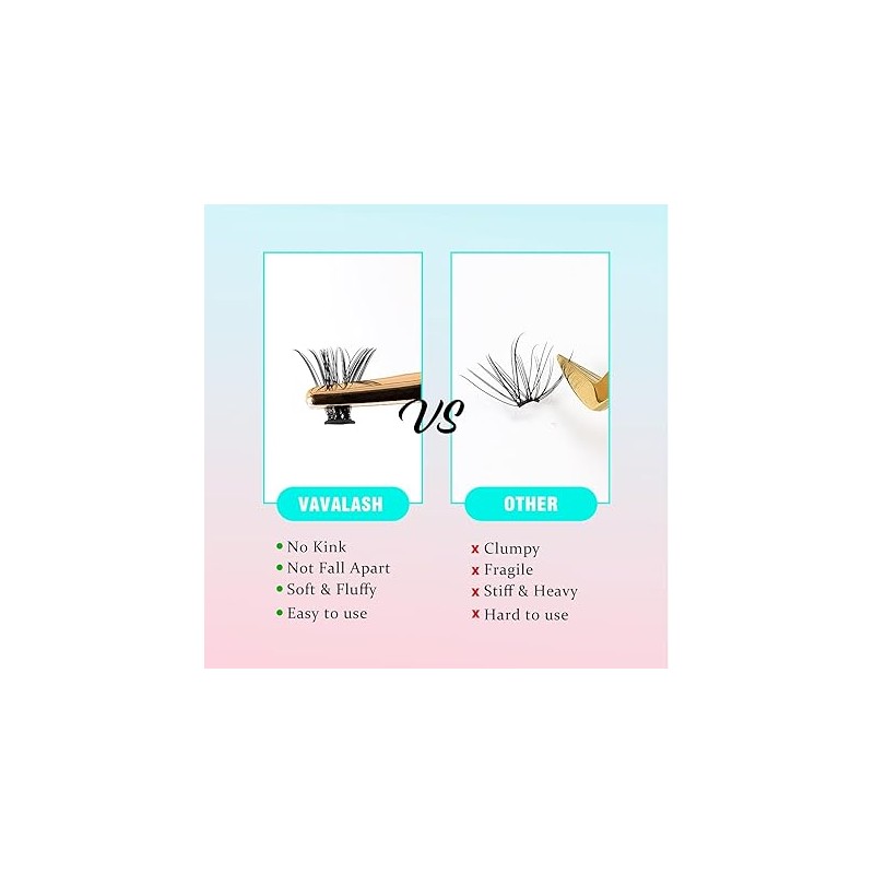 - Multiple Styles, Different Beauty Experiences. VAVALASH offer cluster lashes in different styles and sizes. You can choose different lashes to create a variety of lash extension effects like natural style, volume style, mega style, cat eye style ect. Start the journey of DIY your eyelashes.