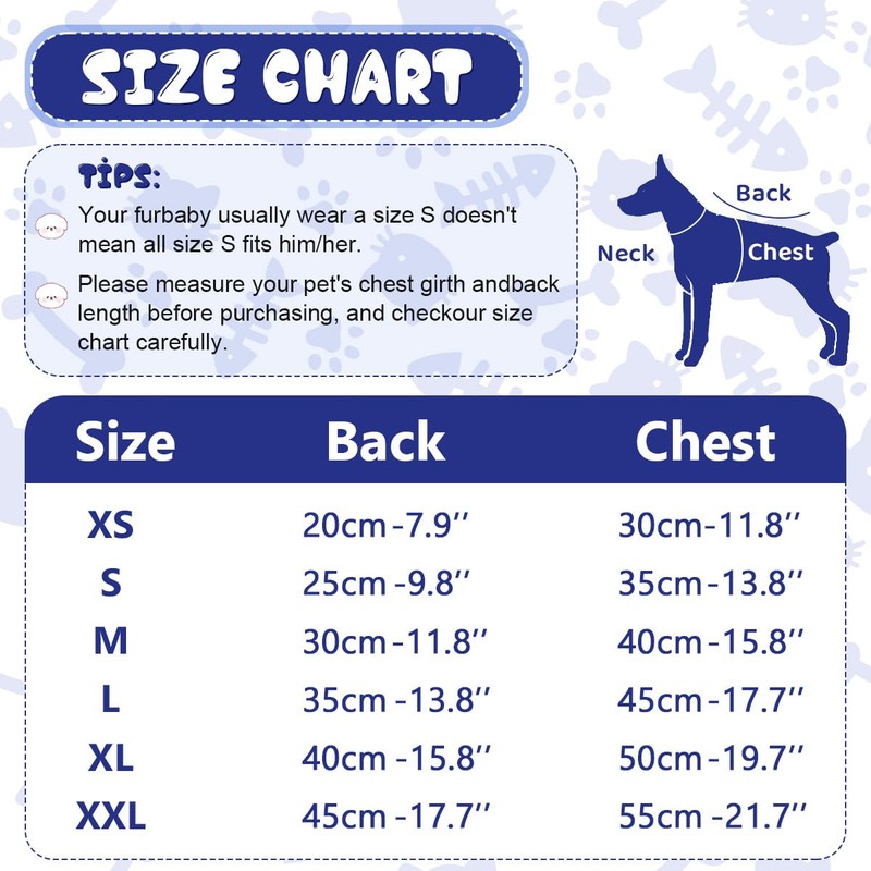 - SIZE VARIETY - Available in 6 sizes (XS-2XL) for small to medium dogs; please measure your dog's chest circumference and back length and refer to the size chart before purchasing.