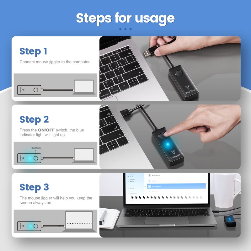 - VAYDEER Undetectable Mouse Jiggler, USB C Mouse Mover Device, Portable Automatic Mouse Wiggler, Driver Free Mouse Shaker for PC Computer Laptop, Plug and Play, Work from Home Essentials