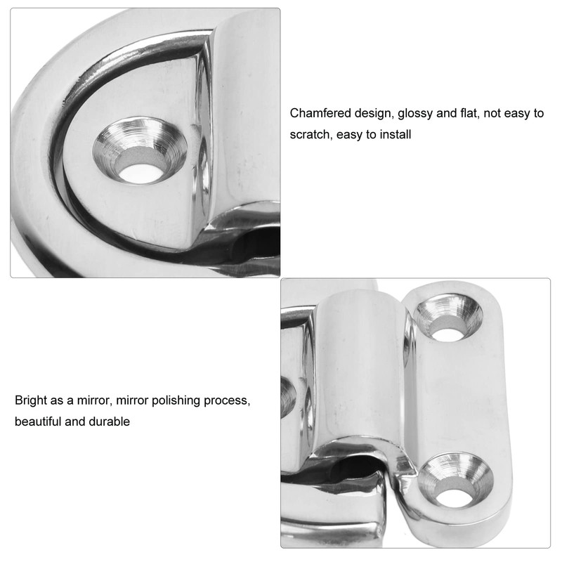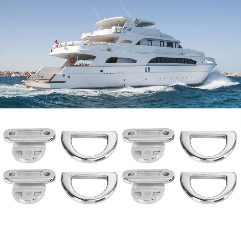 VBESTLIFE Folding Pad Eye, 4 Sets 316 Stainless Steel Marine Grade Folding Pad Eye Marine 8MM D Shaped Connecting Rings Folding Deck Hardware Hardware