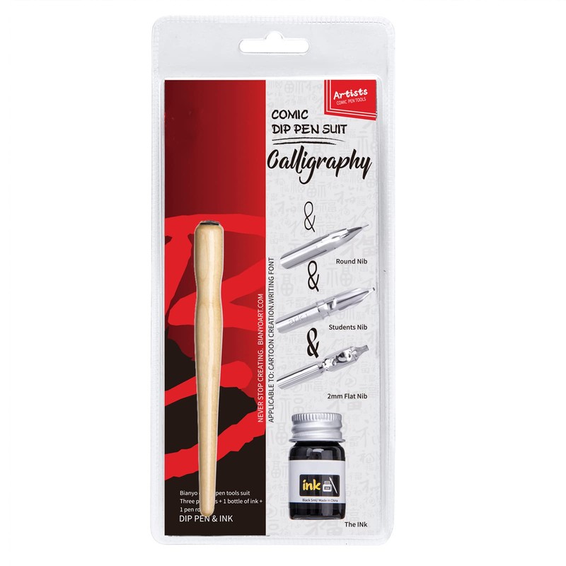 • Comic pen set: 3 different nibs for different requirements: 2 mm flat nib, student nib and round nib.
