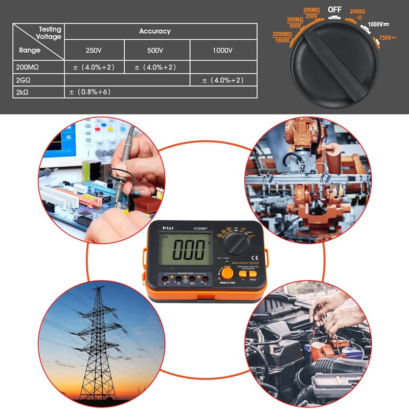VC60B+ is a reliable and efficient tool for testing insulation resistance in a wide range of applications. It is suitable for use by electricians, engineers, technicians, and hobbyists who need to test the safety and reliability of electrical systems and equipment.