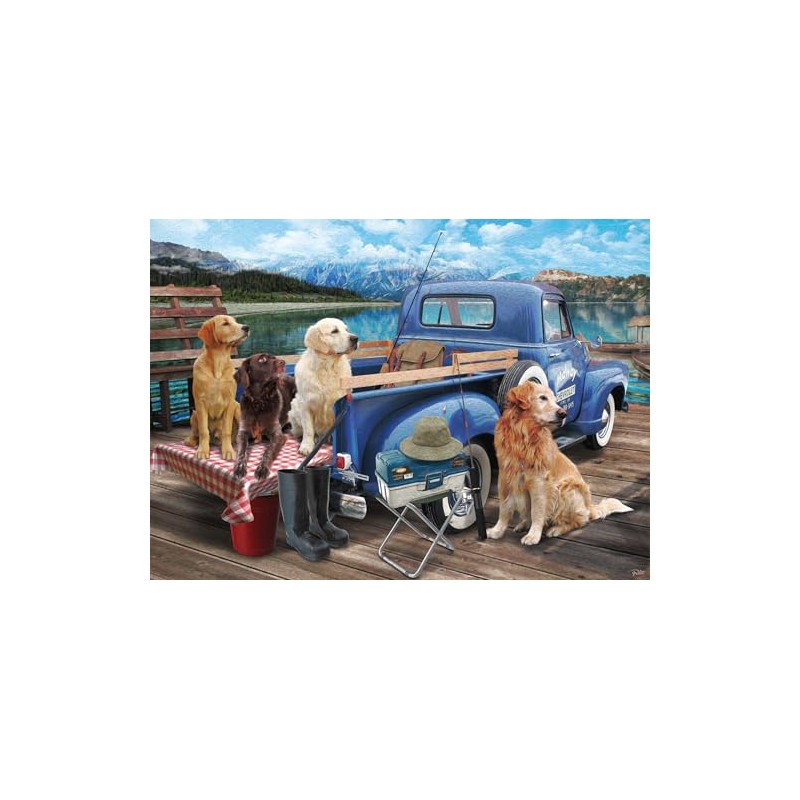 VCC Dogs Gone Fishing Jigsaw Puzzle 1000 Piece - Finished Size 26 5/8" x 19 1/4" - Fully Interlocking & Randomly Shaped Pieces