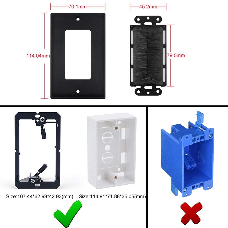 - WIDE APPLICATION - This 1 gang brush wall plate works with HDMI, USB, coaxial, speaker wires, networking cables, tv power cords and any other wires in TV wall, home theater, cabinet, pc monitor to bring no unsightly holes.