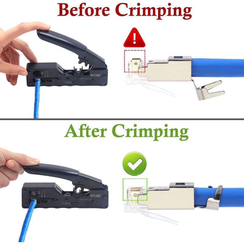 - Compatible with all shielded RJ45 connectors, RJ45 Cat 7 connectors, RJ45 and RJ11/12 connectors.