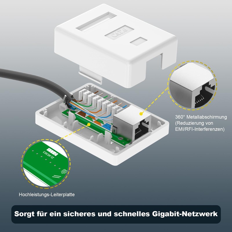 - Reliable quality: The keystone surface mount box supports PoE as well as T568A & T568B cabling standards with marked terminal blocks. Dual IDC connectors accept lsa landing tool. The 360° metal shielded housing can reduce EMI/RFI interference for a more stable and faster connection.