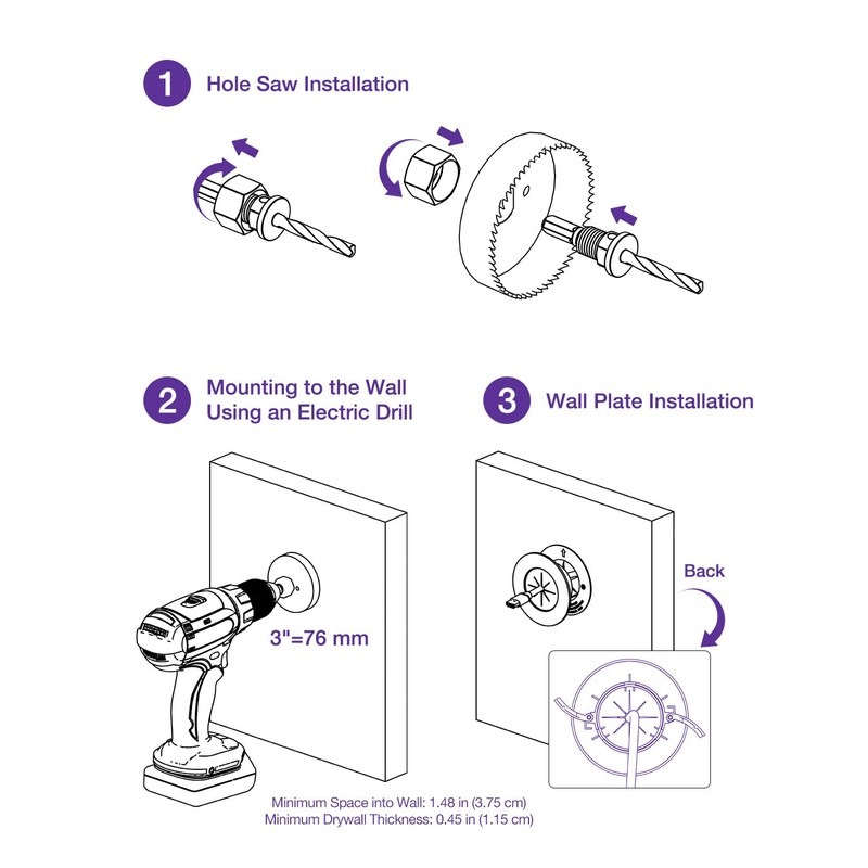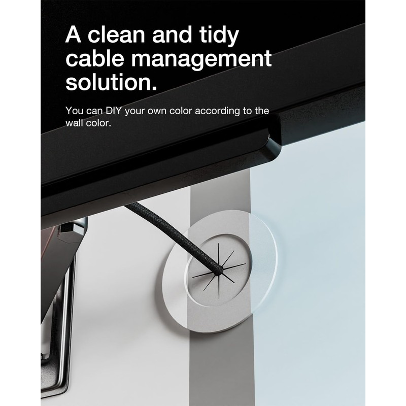 - QUICK INSTALLATION AND PERFECT FIT: Behind-wall cable management includes a drywall hole saw drill attachment for a perfect grommet fit. Just add a drill, and you can get it done in a few minutes. The bracket is included to make it a perfect fit, and you don't need to buy a bracket additionally.