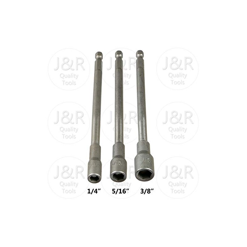 VCT 3pc 6" Long Magnetic Nut Driver Set 1/4" 5/16" 3/8" Power Drills Power Drivers