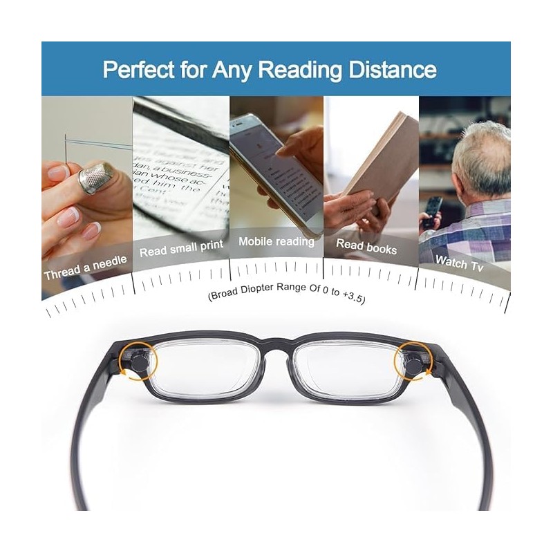 - ♚【UNIVERSAL DESIGN AND VERSATILE USAGE】The adjustable focus reading glasses suitable for most people, not only can be used as presbyopia glasses and reading glasses but also can be used for children to do experiments to stimulate children's desire to explore and seek knowledge.A pair of reading glasses can be used in a variety of scenarios, such as reading, gaming, watching TV, using a computer, etc. Say goodbye to multiple pairs of glasses; one adjustable pair suits different needs.