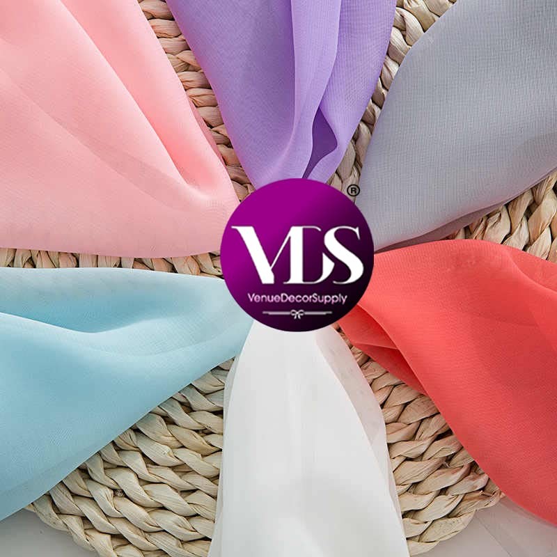 ?Make your wedding or any events look more classy and elegant by adding beautiful Drapery fabric from Venue Decor Supply (VDS ) . We have a large selection of colors for your Drapery fabric needs. This unique chiffon semi-sheer fabric is soft and more graceful than tulle or nylon fabrics and has Fluid Drape, Luxury feel and aesthetic.