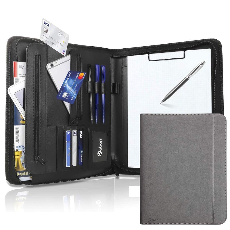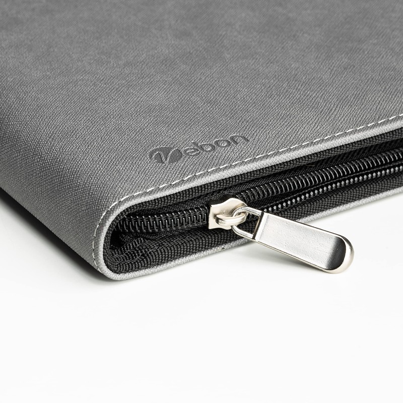 Vebon® New York Writing Case A4 Large I Vegan Leather Zip + Clipboard I Conference Folder + Laptop Bag I Extra Storage Space I Black, Phantom Grey