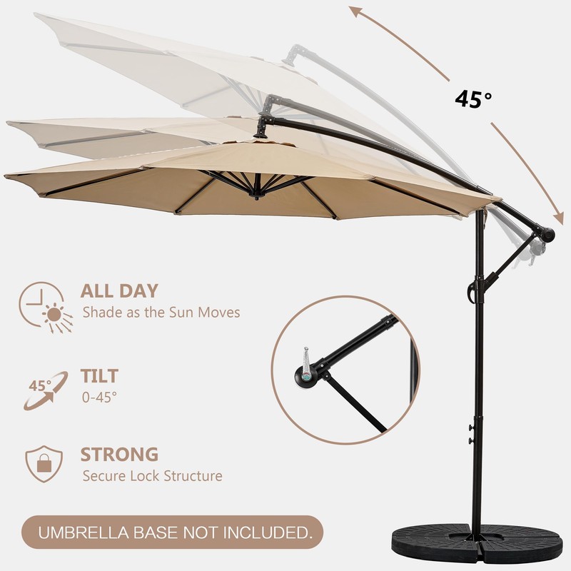 VECELO 10ft Offset Patio Umbrella, Cantilever Umbrella, Hanging Outdoor Umbrellas with 8 Ribs, Market Umbrella w/UV Protection Waterproof for Market/Backyard/Pool/Garden/Lawn, Handy Crank&Cross Base