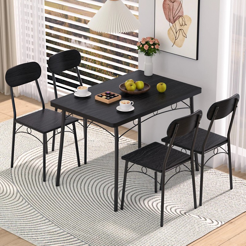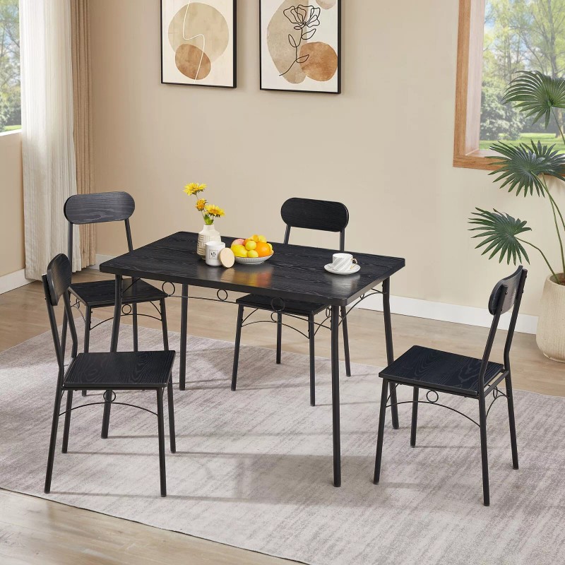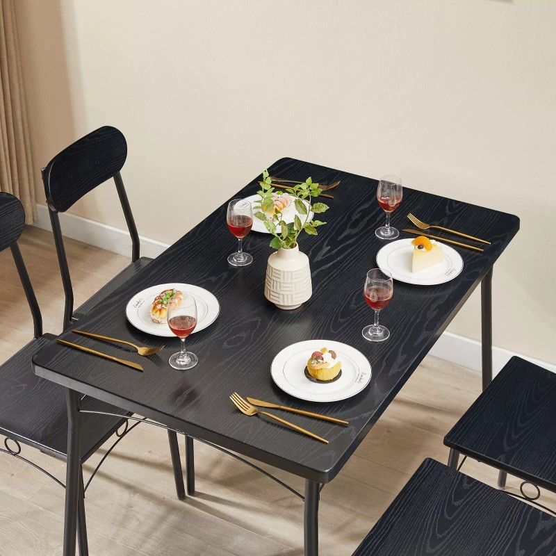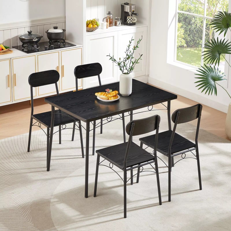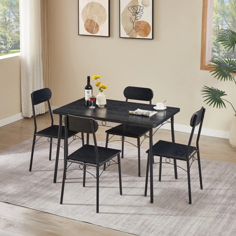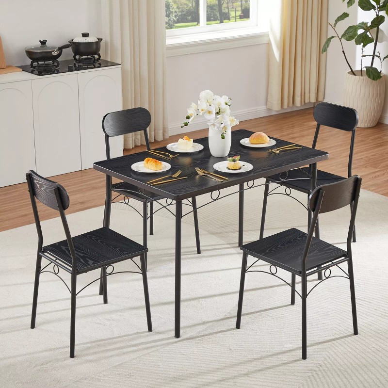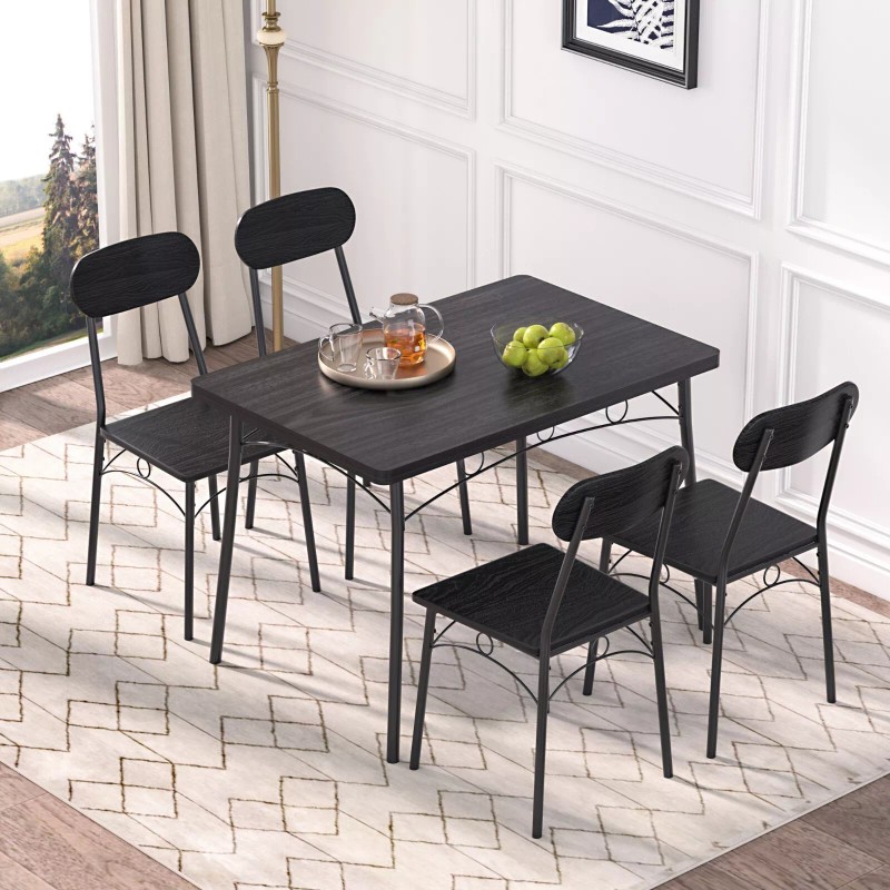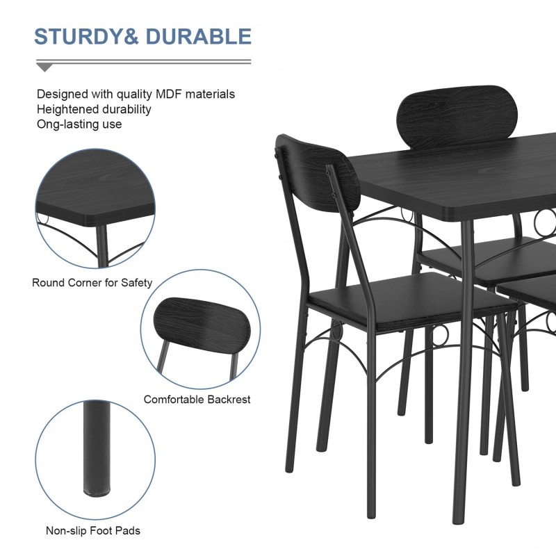 Vecelo 5 Piece Dining Table Set 4 Chairs Breakfast Wooden Home Kitchen Dinette Table - Black