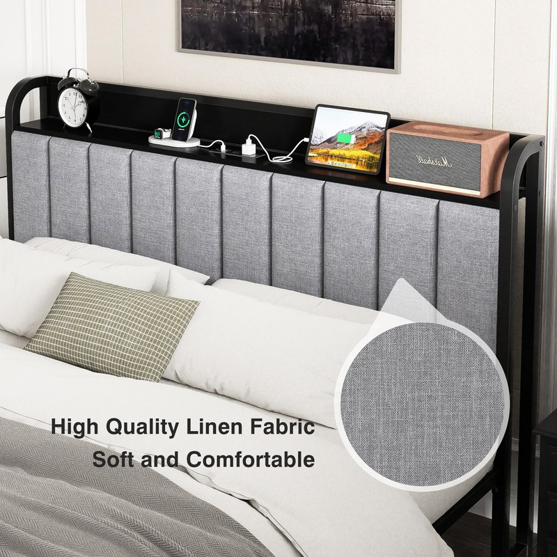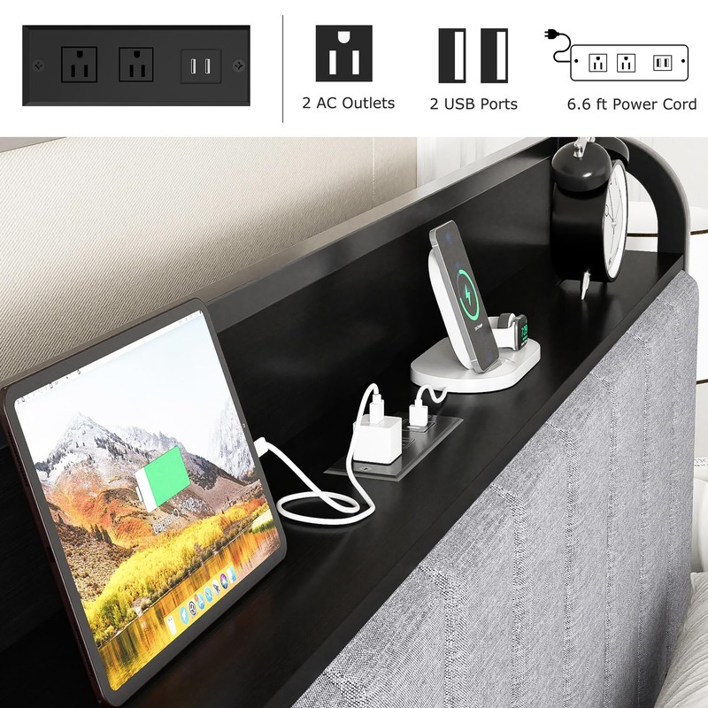 - 【Upholstered Headboard with Charging Station】-This full size bed frame features a built-in charging station, including 2 standard power outlets and 2 USB ports for all your charging needs. Easy to charge your phone, tablet, lamp, humidifier, and other electronic devices.