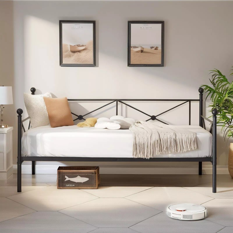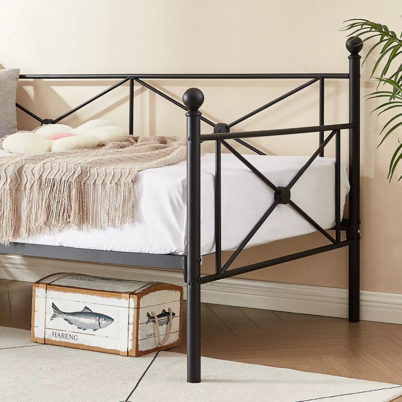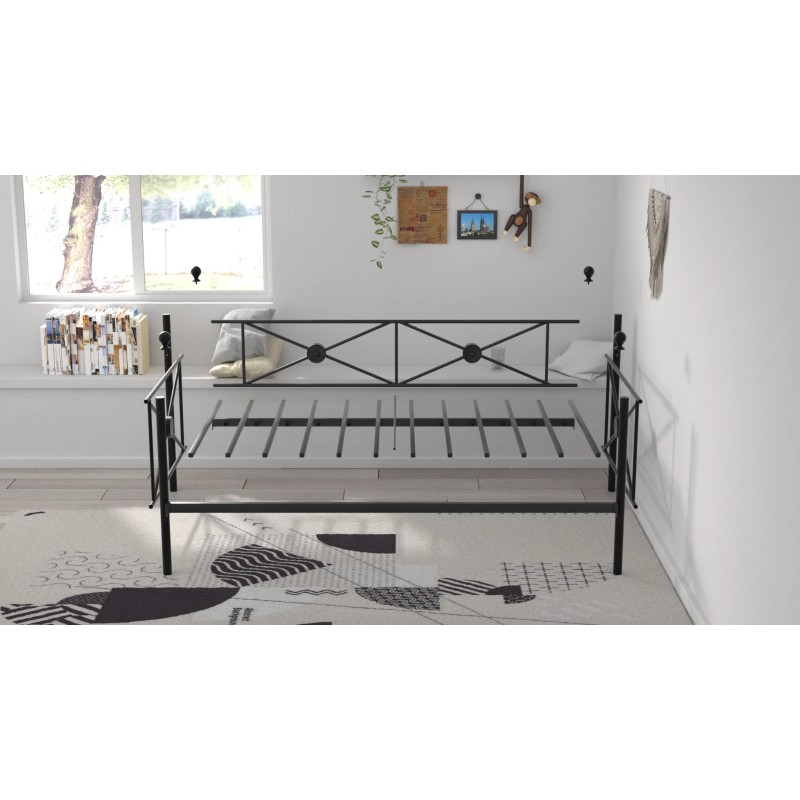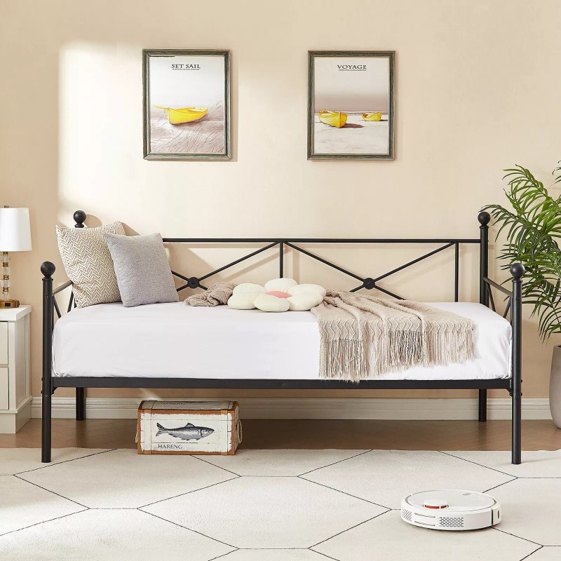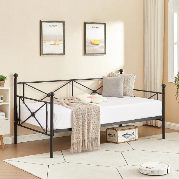 VECELO Classic Metal Daybed Frame Mattress Foundation Bed Sofa with Headboard - Black