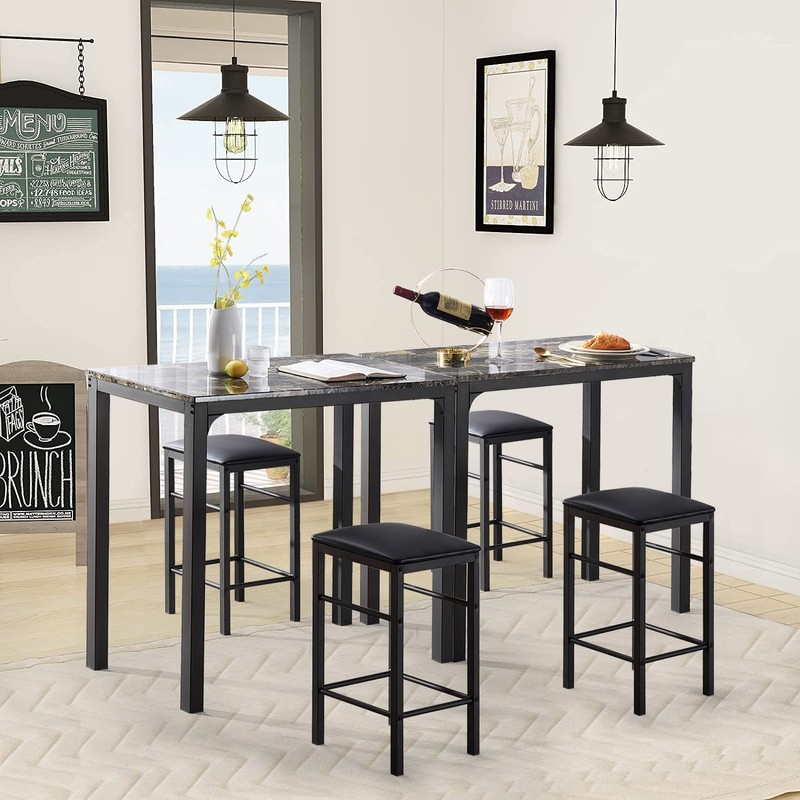 - Easy to assemble: The simple structure of the bar stools and the kitchen table allow quick and easy assembly.