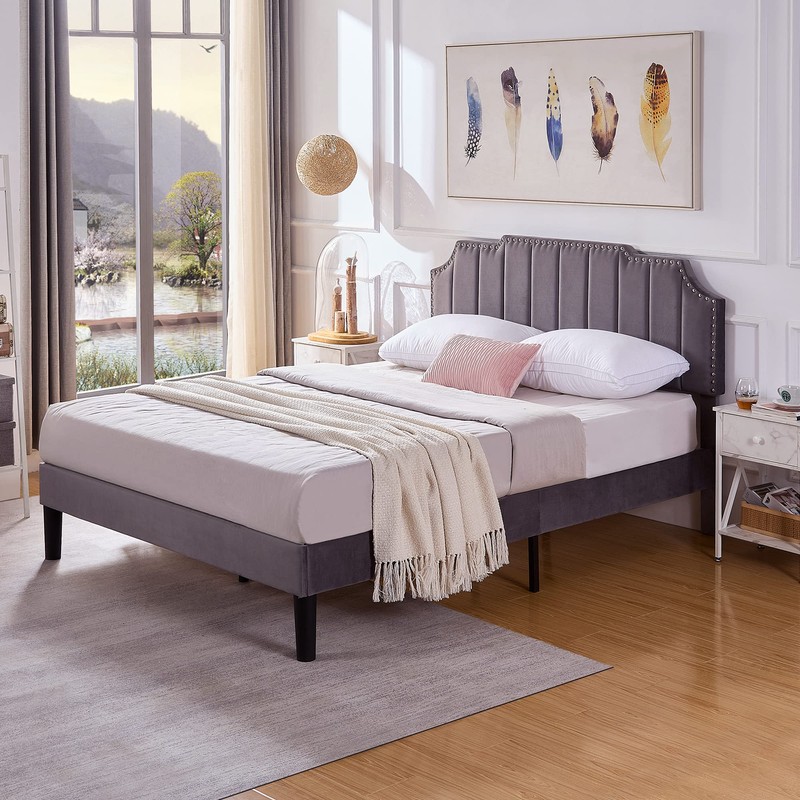 - 【Stylish and Comfortable】The full bed frame with Upholstered linen and tufted headboard, this classic upholstered bed frame can match a variety of bedroom styles perfectly. Thick and dense foam padding gives you comfortable touch.