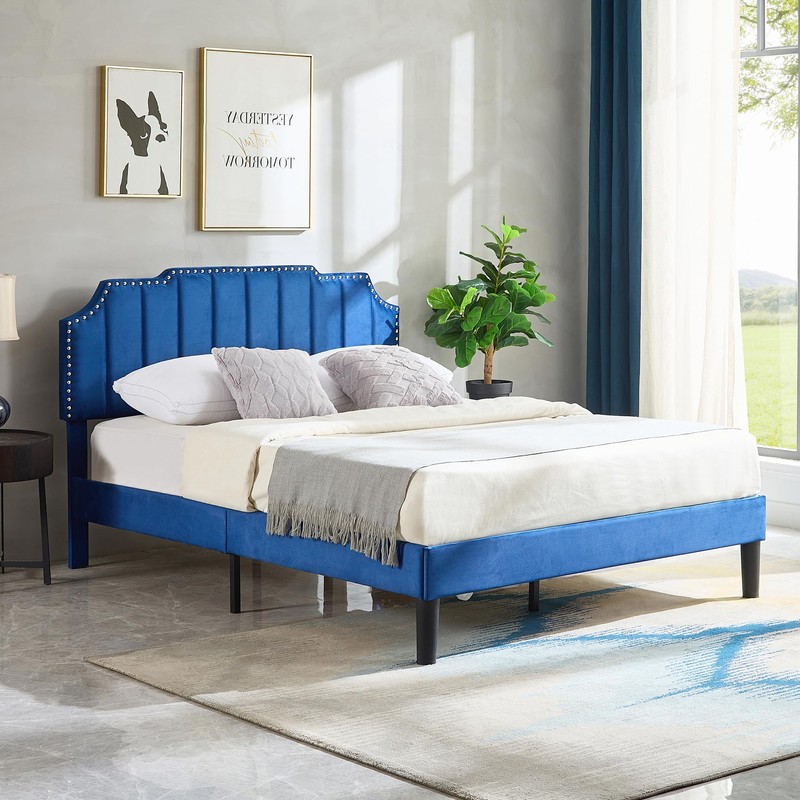- 【Stylish and Comfortable】The full bed frame with Upholstered linen and tufted headboard, this classic upholstered bed frame can match a variety of bedroom styles perfectly. Thick and dense foam padding gives you comfortable touch.