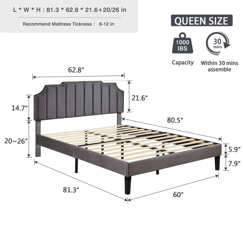 - 【Velcro Fastening Slats】The queen size bed frame fixed with Velcro to eliminate noise, guaranteeing a quiet night's sleep also quicken installation makes it is easy to assemble.