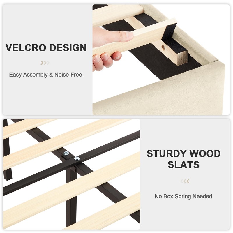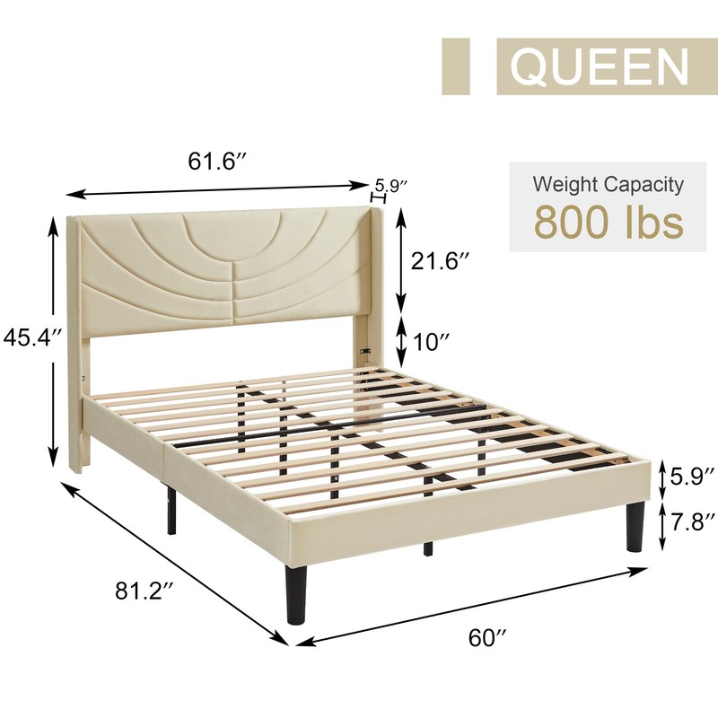 - 【Sturdy and Durable】This queen bed frame is sturdy and durable,made of high-quality metal and wood.With anti-scratch foot cover, which can reduce friction to protect the floor from scratching.Maximum weight recommendation: 800 pounds.