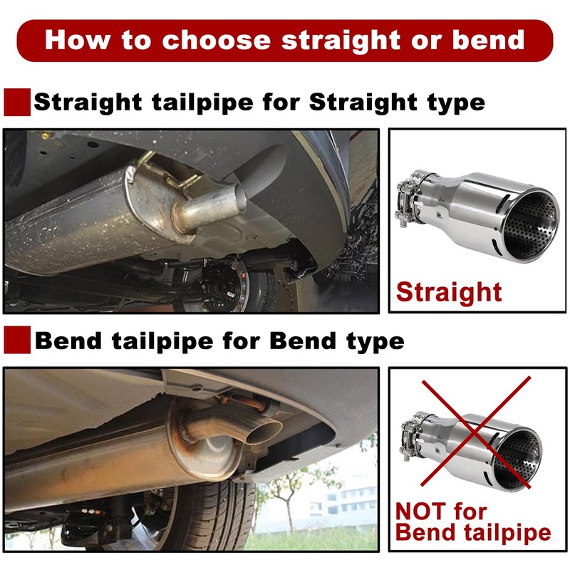 • 【Universal Fit】Whether you drive a car, truck, or diesel vehicle, this exhaust tip is designed to fit most models. Its durable construction and loud exhaust tips design ensure improved exhaust flow and a bold, sporty sound