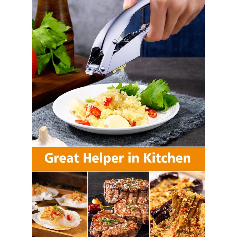 Vecuni Garlic Press, 2 in 1 Professional Garlic Press Slicer Crusher with Ergonomic Handle, Easy to Clean, Garlic Mincer & Garlic Slicer for Kitchen, Time & Labor-Saving