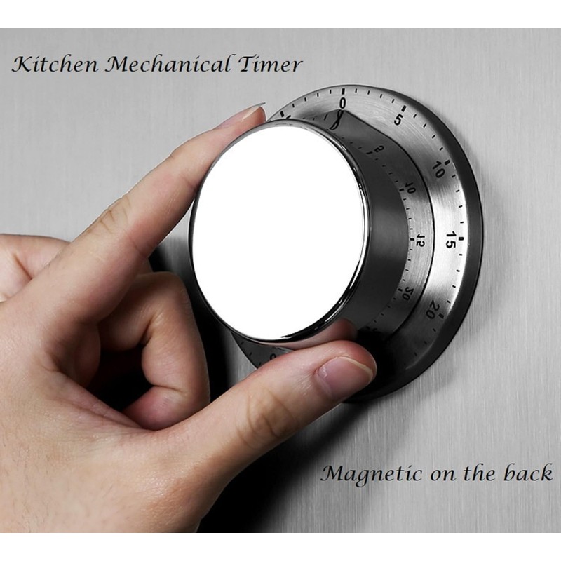 VEDA Mechanical Kitchen Timer, Chef Cooking Timer Clock with Loud Alarm, 60-Minute Countdown, Magnetic Backing, Stainless Steel body, Sliver