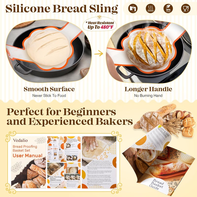 • EVERYTHING YOU NEED FOR SOURDOUGH SUPPLIES - Turn the challenge of bread basket proofing into an enjoyable experience. With VEDALIO's expertly crafted sourdough tools, you can mix, proof, and bake without the mess or frustration. Say goodbye to misshapen loaves and uneven textures. Please handle the bread lame carefully as the blades are sharp, and always keep the lame and metal scraper out of the reach of children for safety.