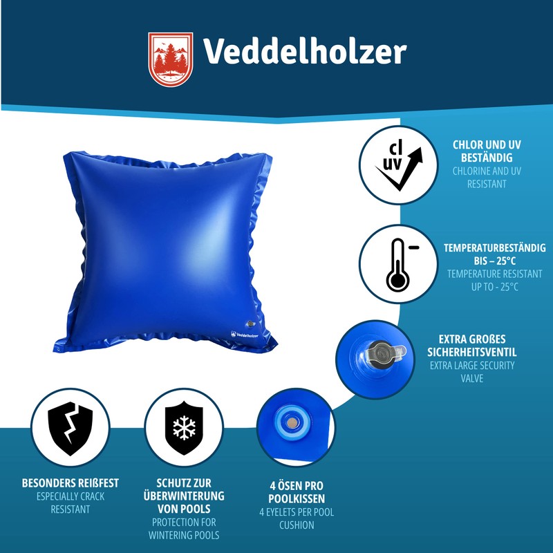 - Universally applicable: the Veddelholzer air cushion is ideal for all pools and hot tubs. Whether round or square. The air cushion together with a stretched tarpaulin serves as an ideal winter cover. Protect your pool and save yourself from annoying unnecessary work. Pool cover as an ideal wintering tool.