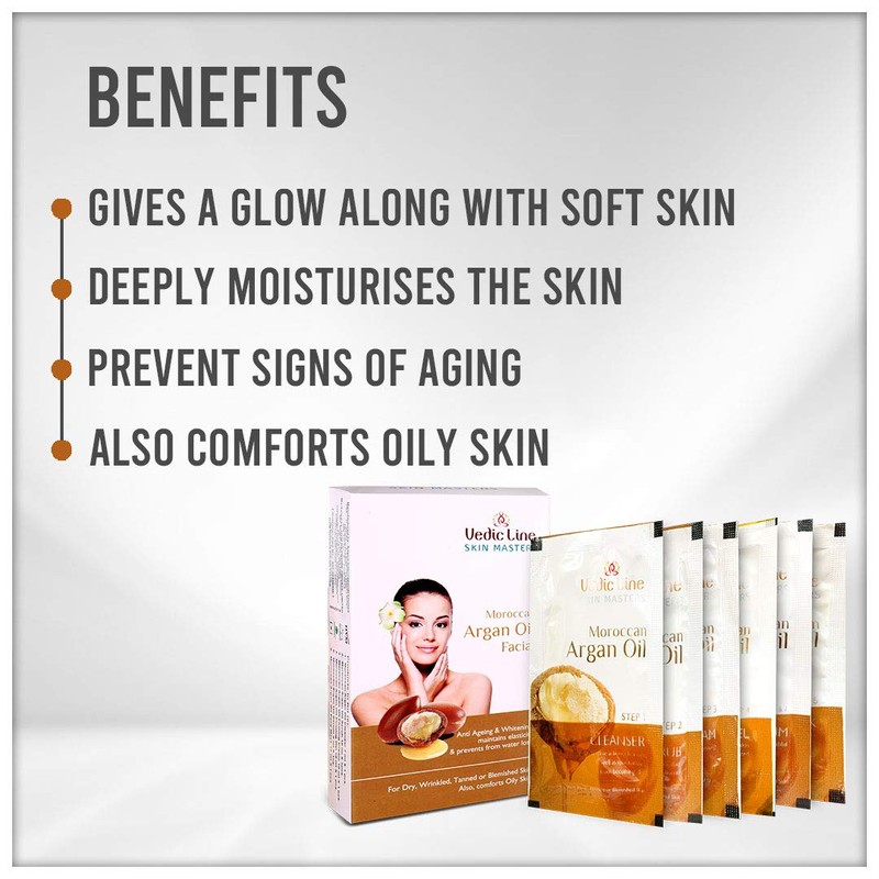 Vedicline Moroccan Argan Oil Mini Facial Kit - Pack of 6 for Radiant and Glowing Skin with Natural Care (Cleanser, Scrub, Cream, Gel, Pack, Serum), 312 ml