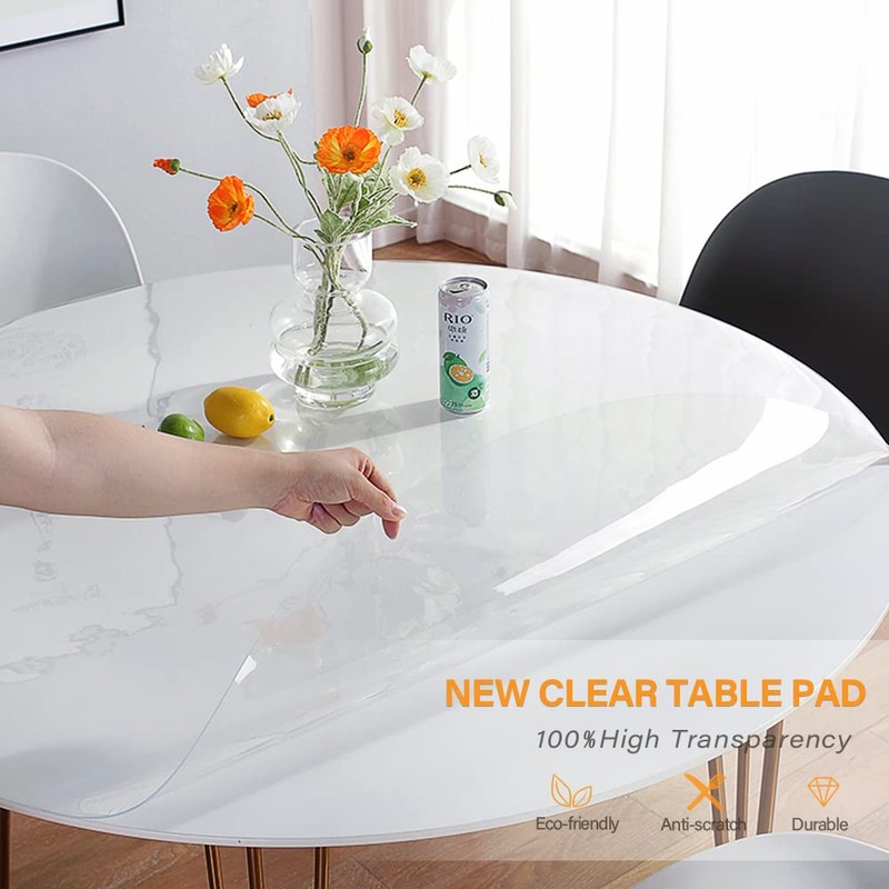 HIGH TRANSPARENCY: The New PVC Table Pad features crystal clear and high transparent, protects your table from scratches, stains, spillages, scuffs while showing off the original beauty of your table furniture top.