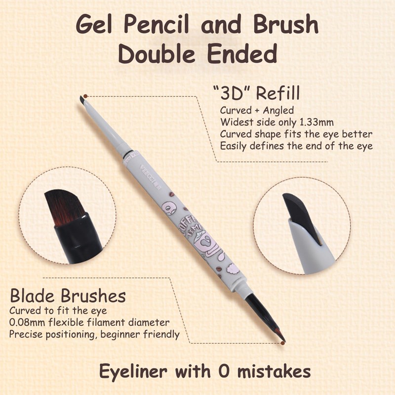 VEECCI Waterproof Gel Eyeliner Pencil - Highly Pigmented, Smudge-proof, Longwearing and Ultra-Fine Tip for Precise Eye Makeup - Built-in Brush for Easy Application - Ideal for women(02 Caramel Brown)